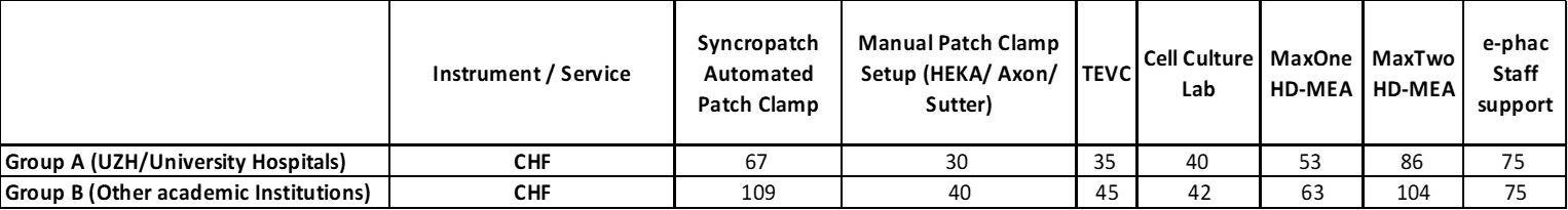 Note: The cell culture service includes access to all equipment (laminar flow, incubators, fridge, microscope, cell counter) and general consumables (general plasticware, PBS, TRYPLE). However, it does not include any specific reagents, cell culture media, serum, antibiotics, etc. Additionally, it does not include e-phac staff time. Any additional consumable will be billed independently.