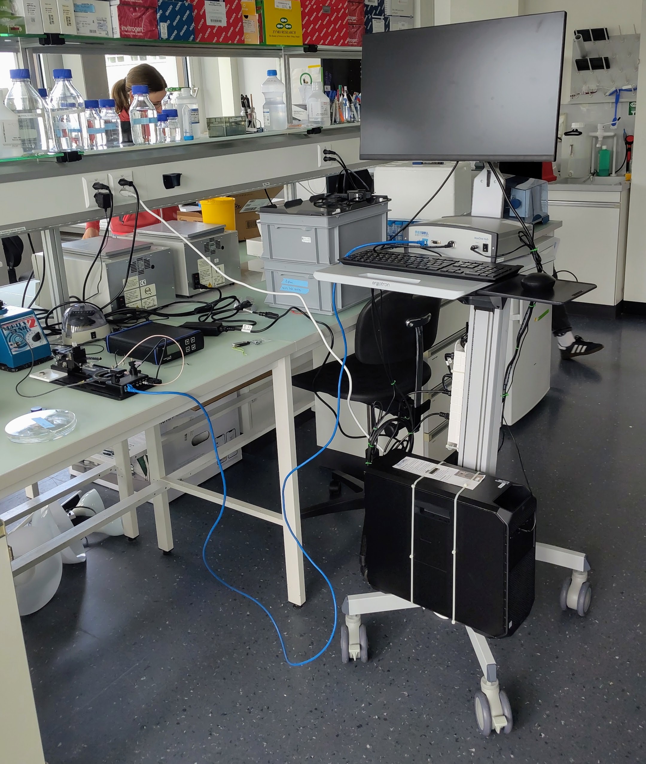 The MaxOne Recording System can be rented as a mobile station in your lab for an extended period of time. The advantages are more frequent recordings and the freedom to measure whenever is more convenient to you! We can deliver this system to your lab including the MaxWell tissue holder and recording PC.